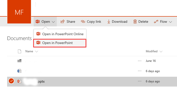 1. Login O365 site where the power point are stored.